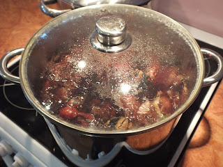 be put into a large pan of water and onion skins where they would be boiled for 15 minutes with the lid on. I went to lift the lid once before time and was told in no uncertain terms, DON'T !!! take the lid off. The different classes came and went and we must have dyed enough eggs to supply the whole of Stelpe.